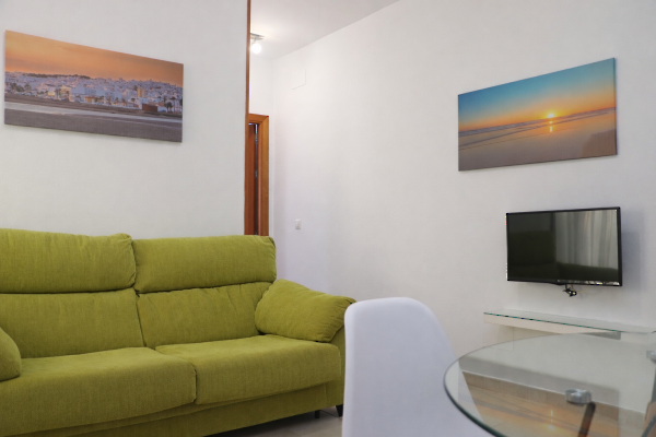 Accogliente appartamento a Conil con capacità per 3 persone. Dispone di un ampio e luminoso soggiorno-sala da pranzo, decorato con toni chiari e dotato di un comodo divano letto, TV a schermo piatto e...